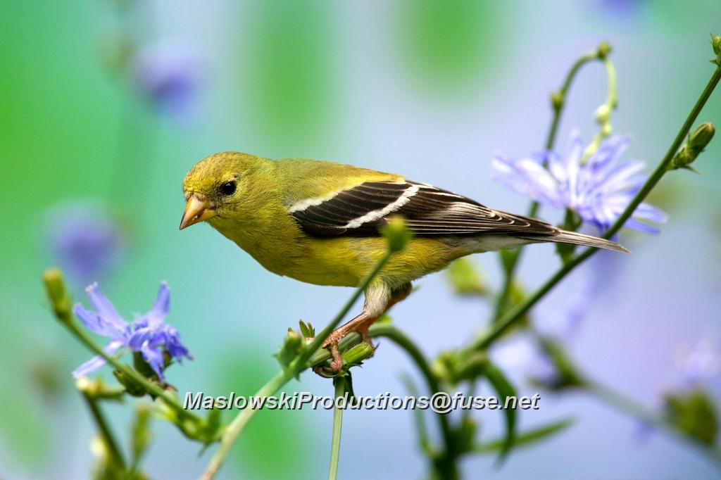 Goldfinch, American - female gathering thistle down VD YL5T3516k