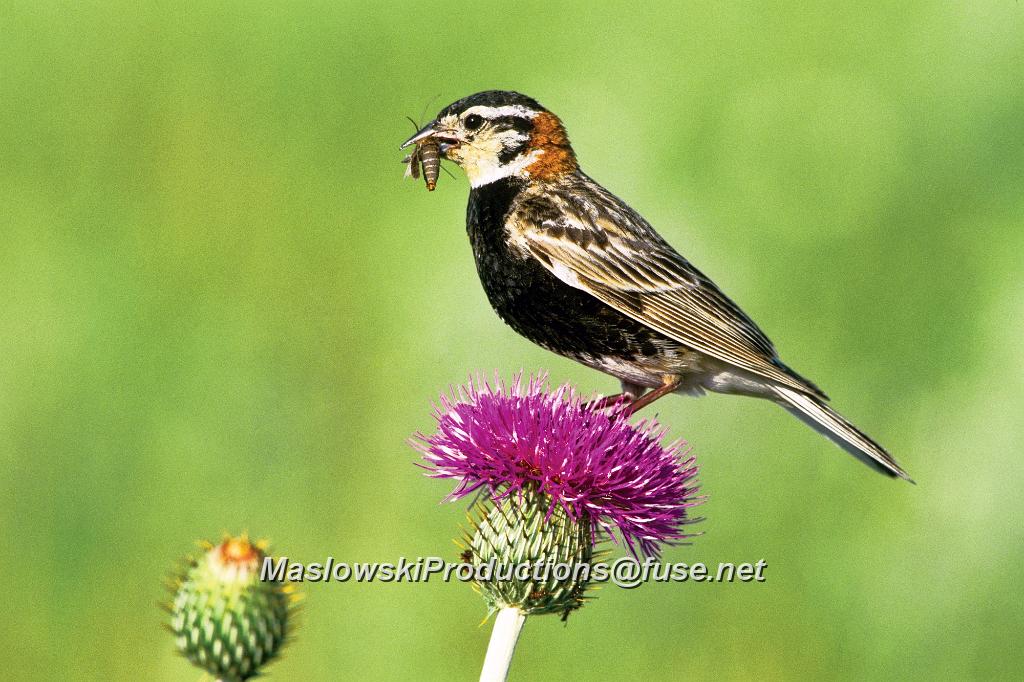 Longspur, chestnut-collared - male with insect on thistle D 18264