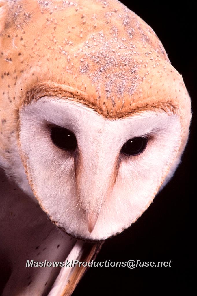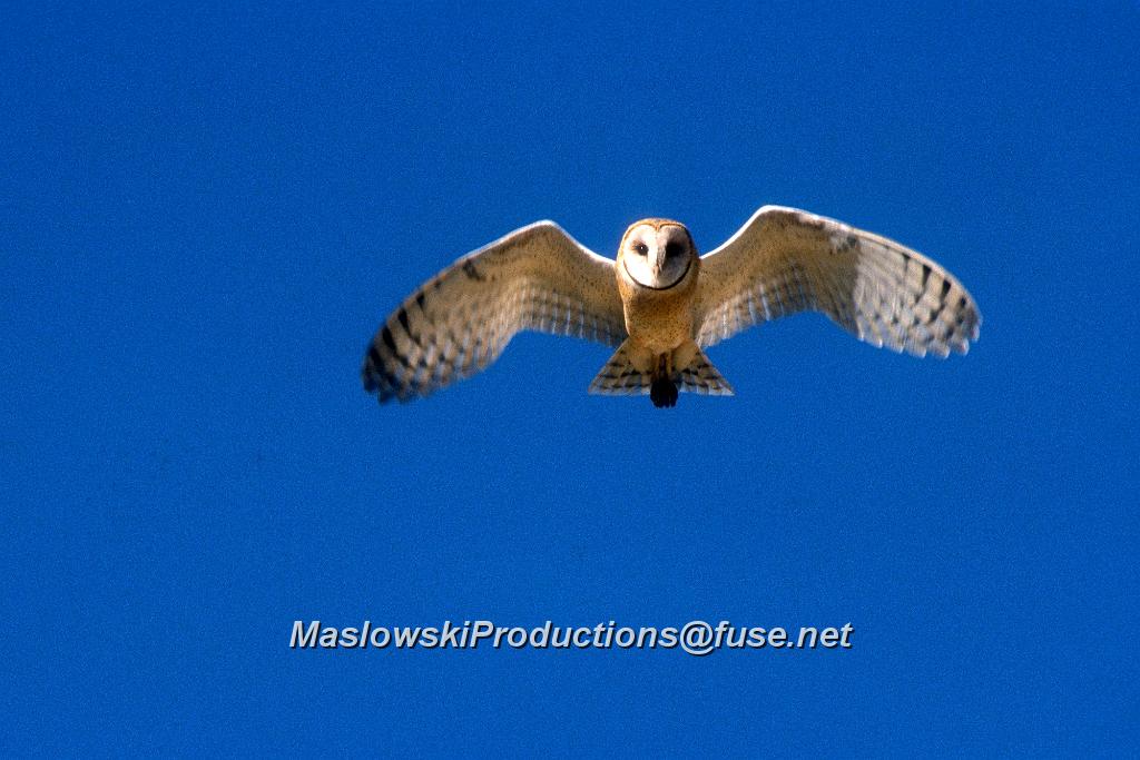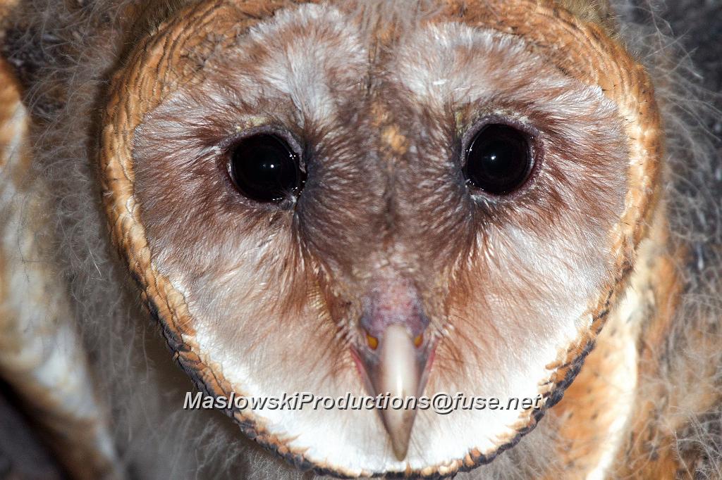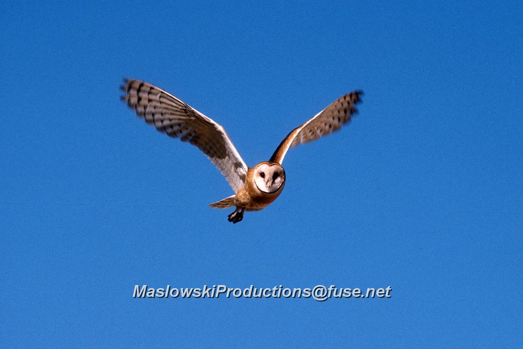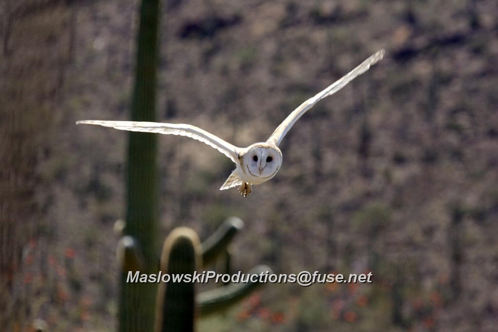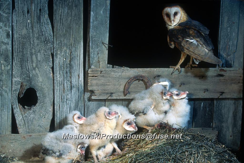 Owl, barn - delivering pocket gopher to nest in cliff BD 17048k