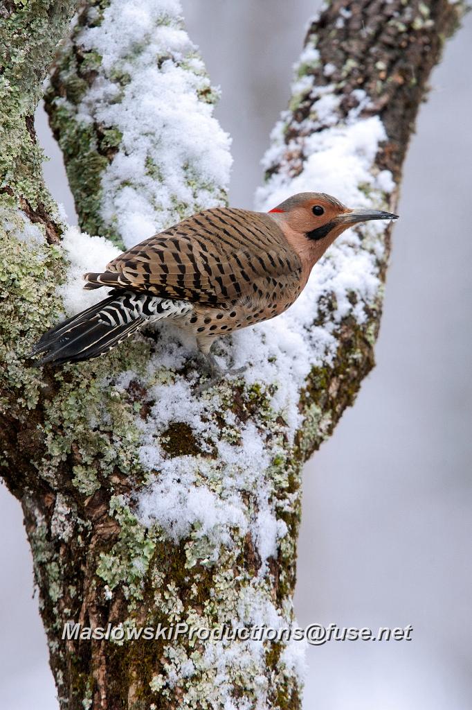 Flicker, northern (yellow-shafted) - male on tree with snow VD YL5T9564k