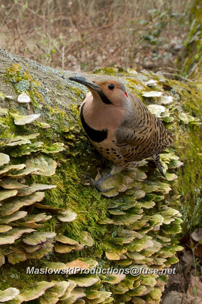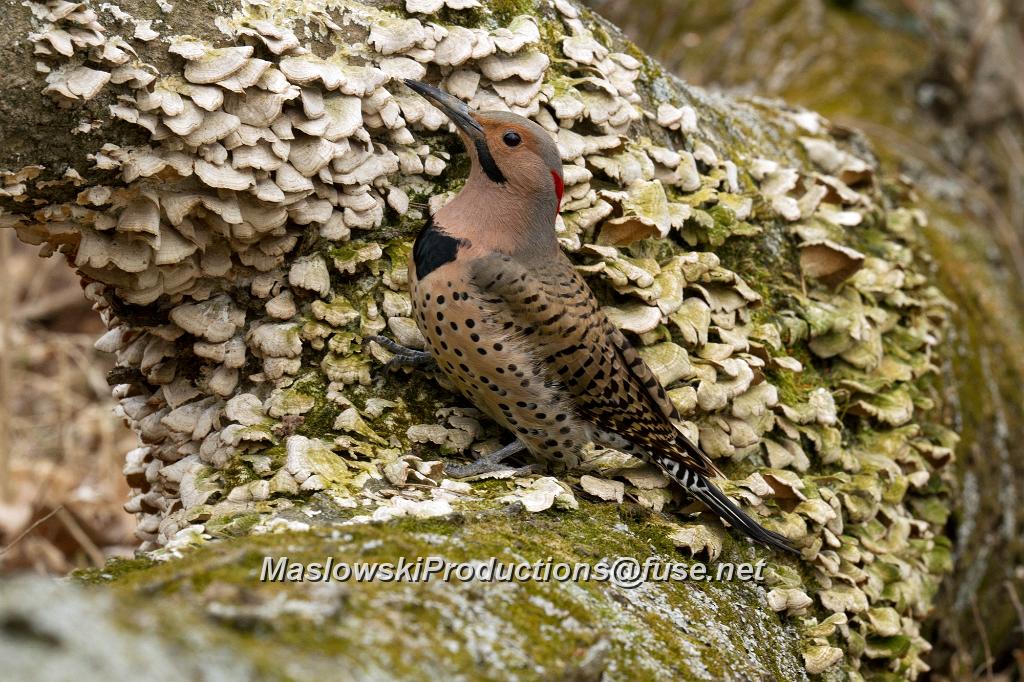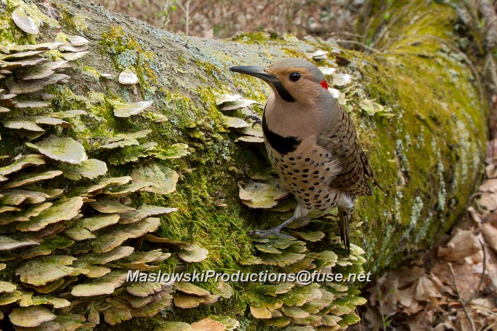 Flicker, northern (yellow-shafted) - male on old maple log VD MASW1976k