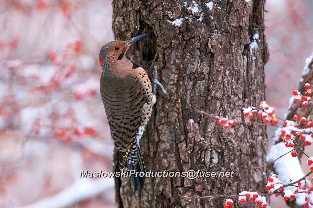 Flicker, northern (yellow-shafted) - male on ash in snow VD YL5T7097k