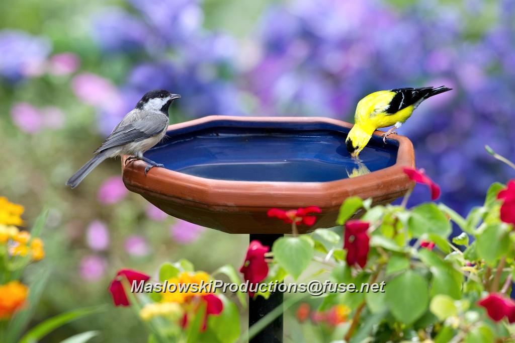 Birdbath - with  Carolina chickadee and American goldfinch CD MASW9606k