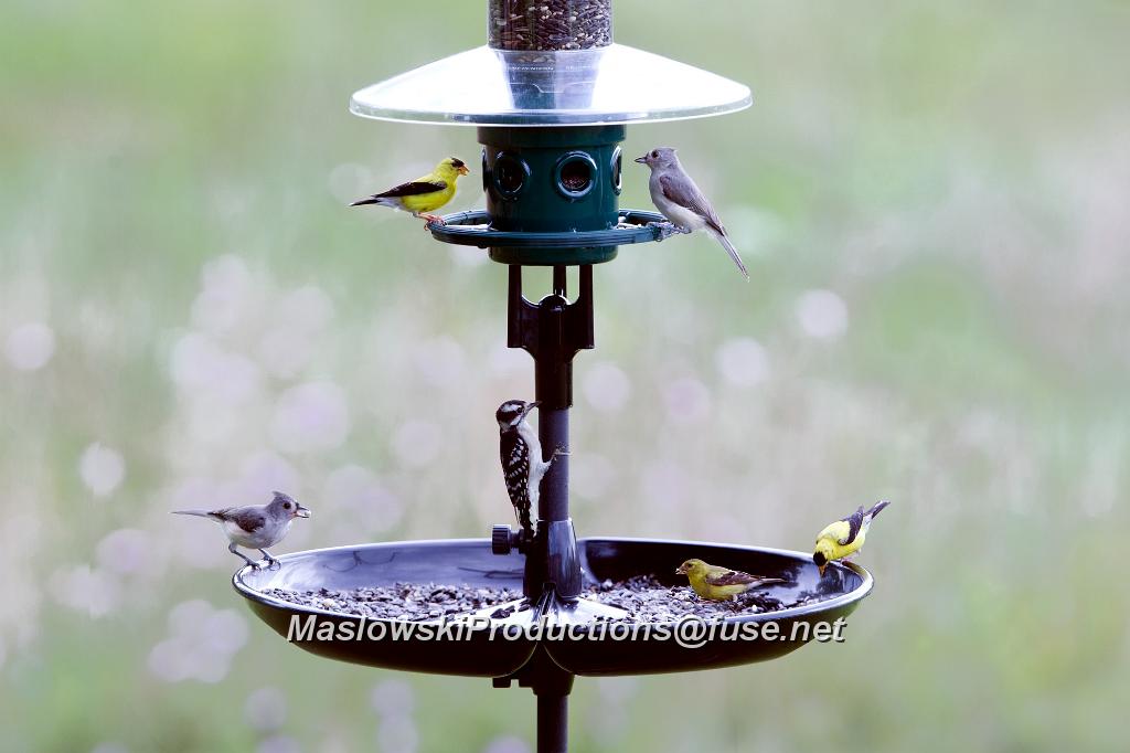 Birdfeeder - American goldinches and tufted titmouse 3MAS7123k