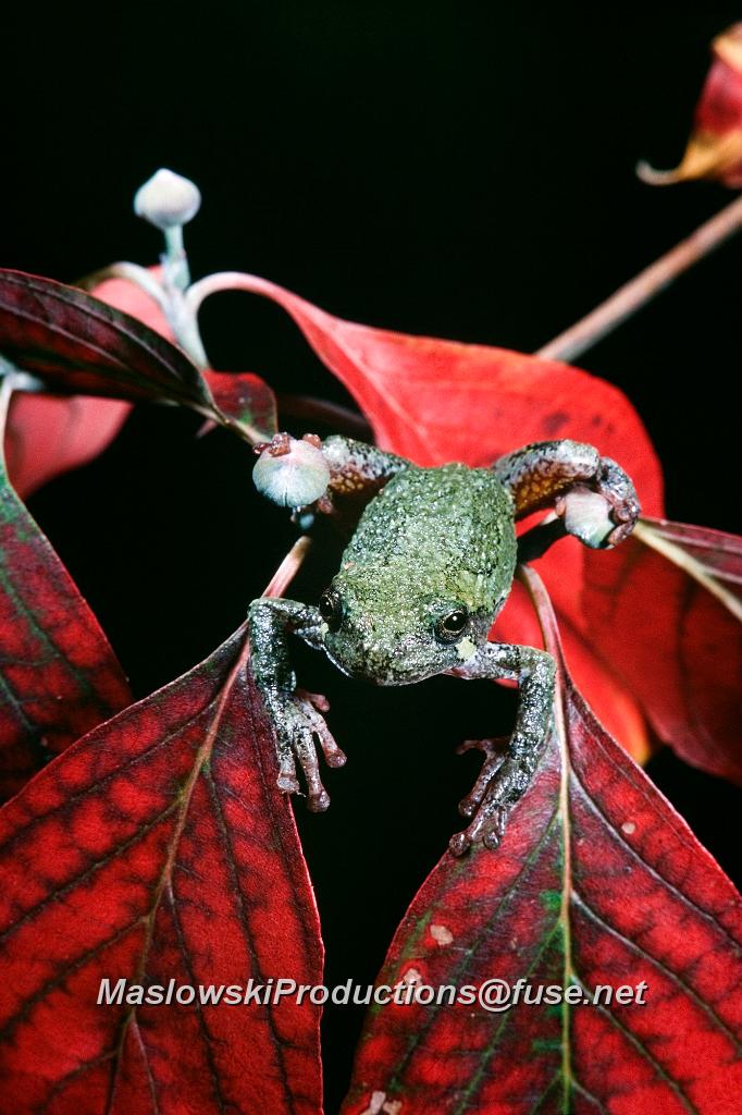 Frog, gray tree - in dogwood in fall D YL5T8893