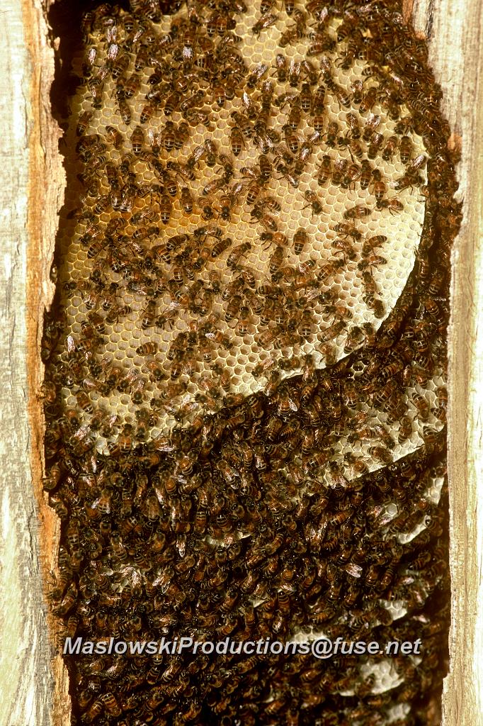 Bee, honey - comb in hollow tree D 9728k