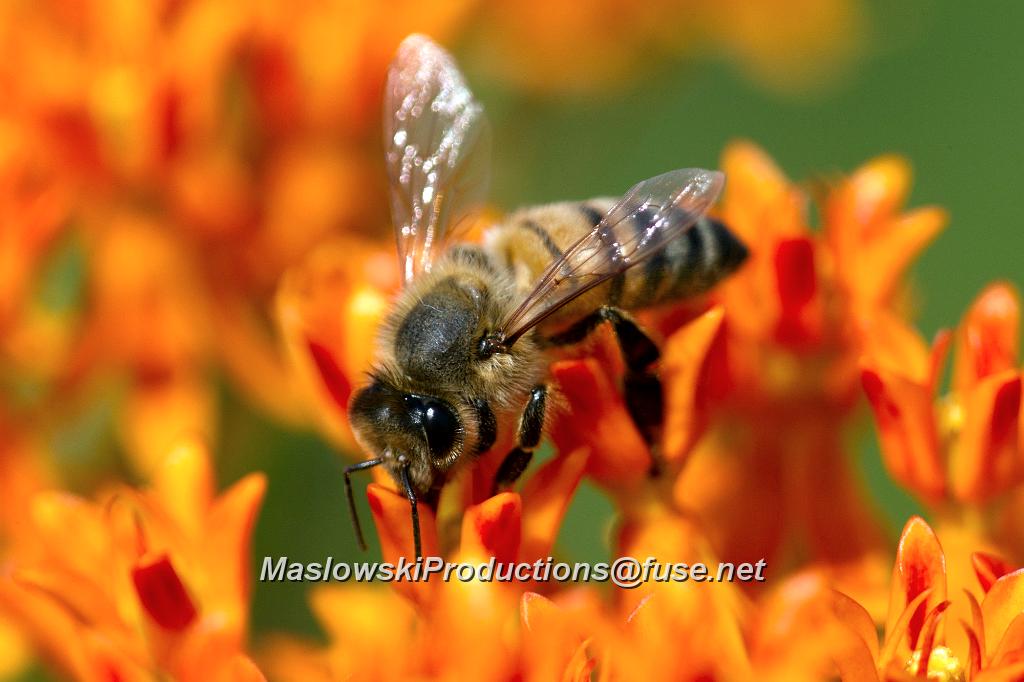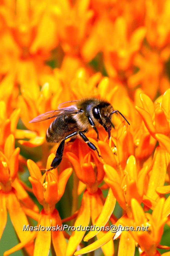Bee, honey - gathering nectar from butterfly weed  blossom CD MASL3317k