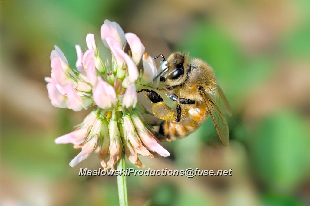 Bee, honey - on clover with full pollen sacs KQ7S2771