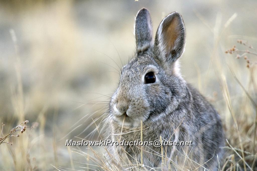 Rabbit, mountain cottontail - eating dry grass KQ7S9384